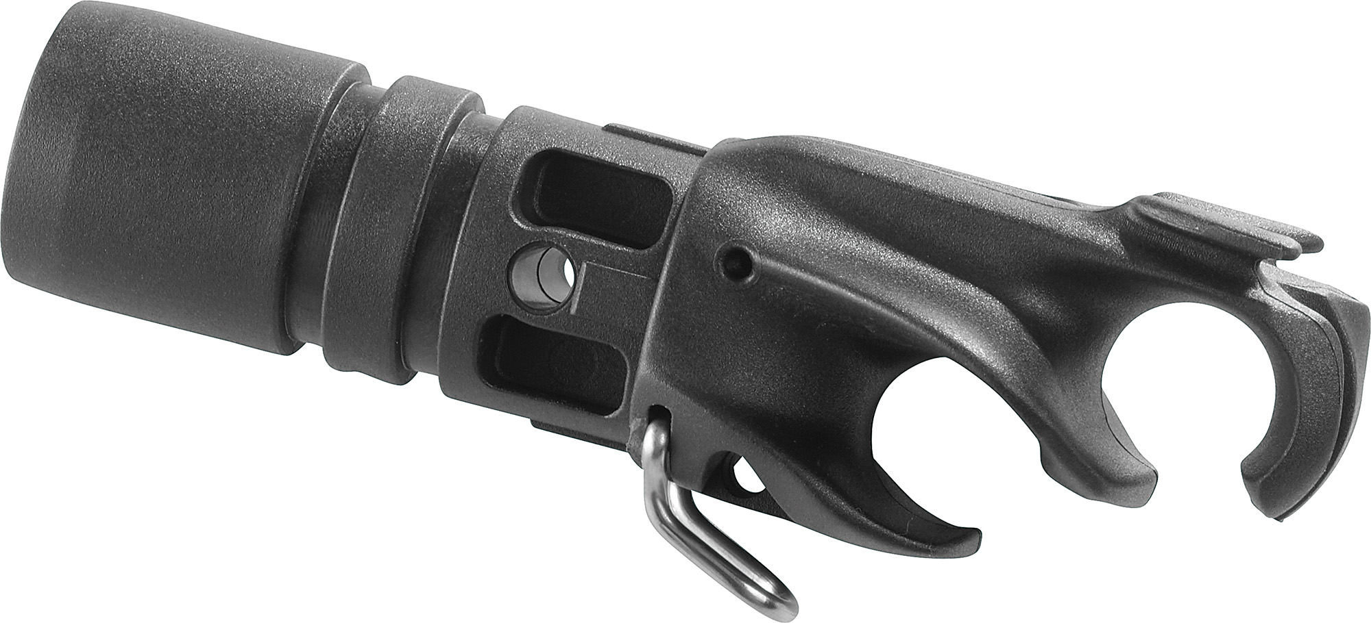 Glass-filled nylon muzzle and stainless steel slide line suitable for double circular rubber band – Ø 18mm max.