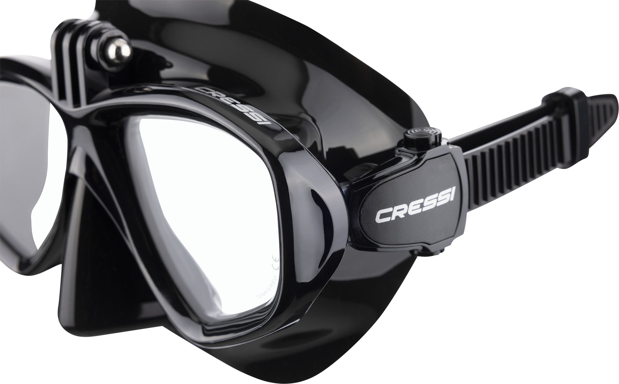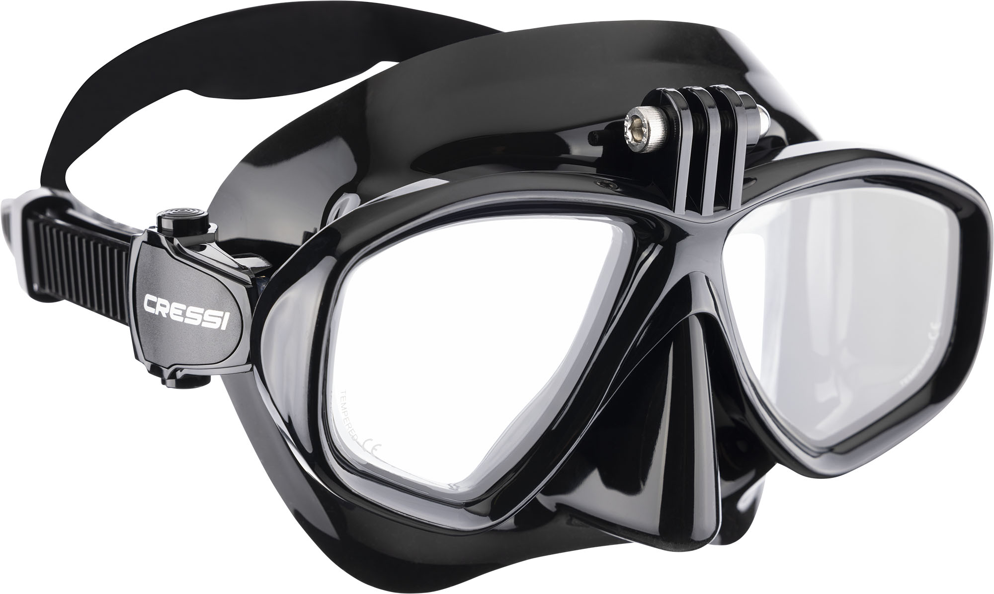 Mask based on the Focus model that incorporates an adaptor on the frame for easy assembly of action cam cameras. The frame has been reinforced in thickness in the assembly area of the camera and includes by default the screw with fixing knob and camera inclination adjustment. Buckles rotate 100% in all directions thanks to the flexible anchorage and allow a microadjustment with one hand by means of a button