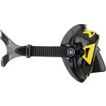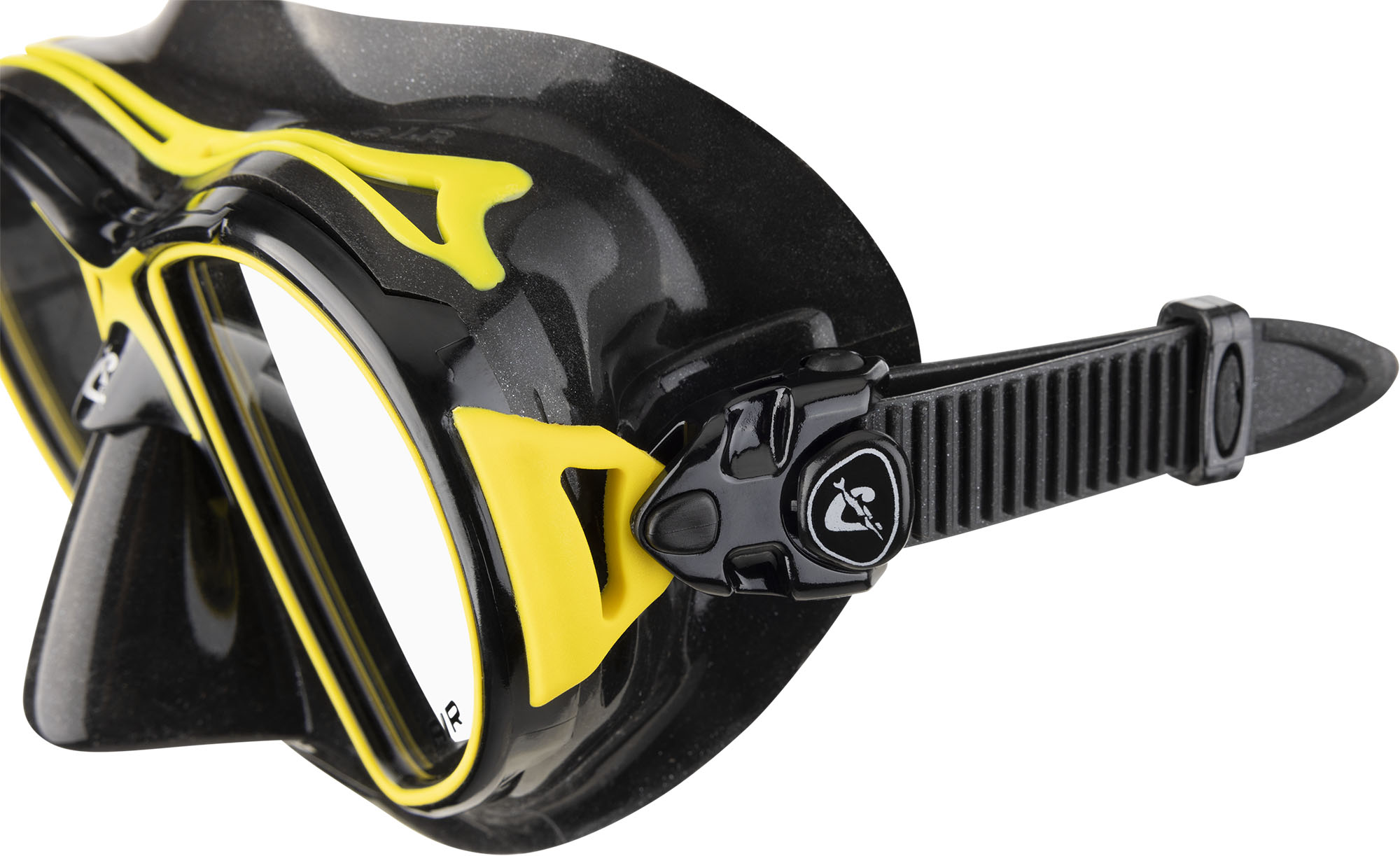 This masks has a particular tapered structure deriving directly from the highly popular nano-masks patent. The dual integrated frame technology system allows you to join the silicone skirt to the lens frame without major interruptions of the curvature continuity. The result is a masks with an extremely hydrodynamic shape and, visibility being equal, a significantly smaller size. The field of view obtained is particularly wide, laterally and in the lower zone. The skirt, in the front part, has a structural silicone insert which increases the sealing ability of the masks and creates an exceptionally pleasant chromatic play. Micrometer adjustable buckles