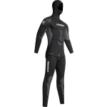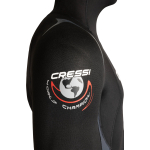 Perfect also for freediving a well-cut suit with particular attention to comfort around the areas where the body suffers most friction. Internal layer in metallic black and a thickness of 3,5 mm, 5 mm and 7 mm. New design of the loading/reloading chestplate and special kneepads for extra protection