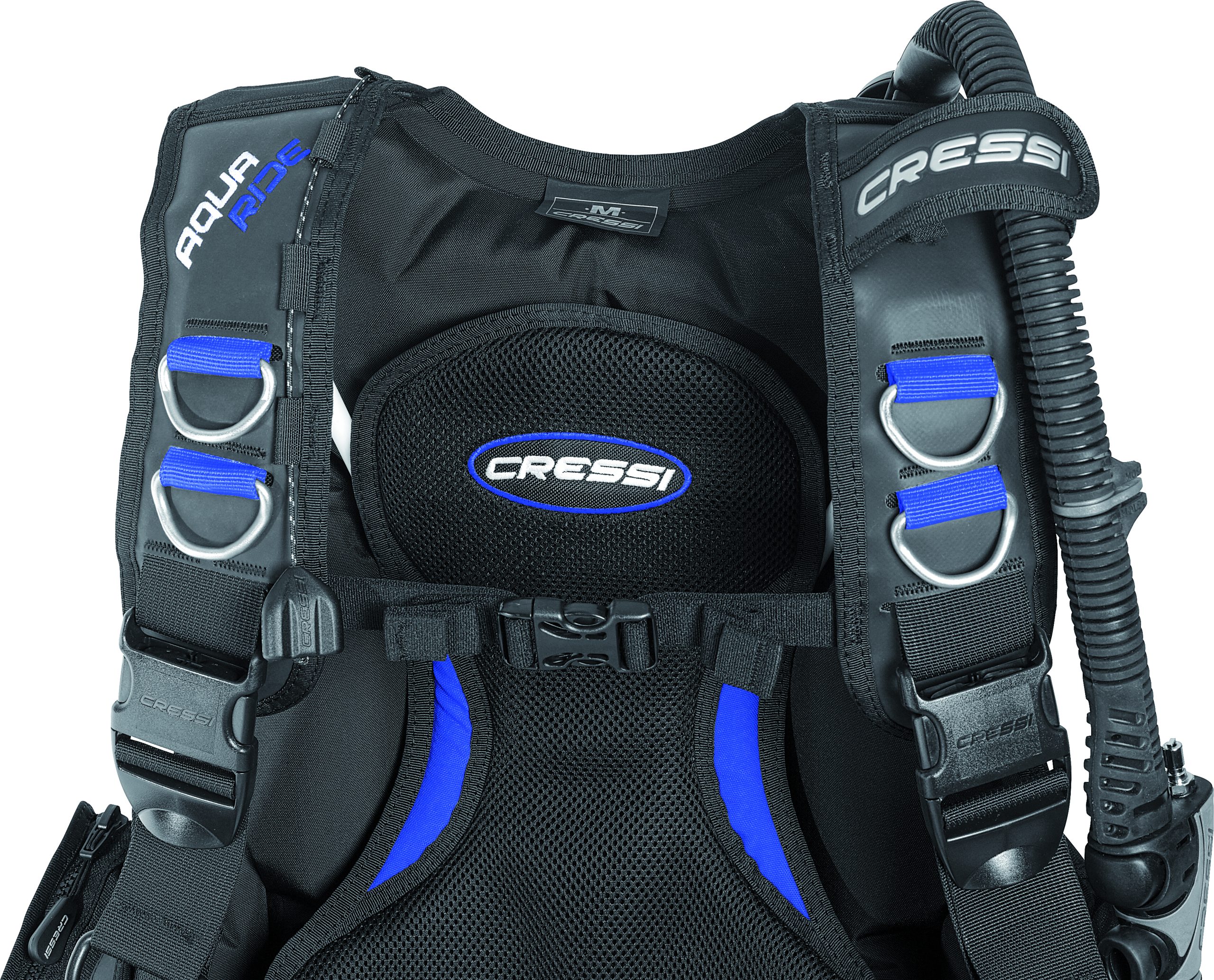 The ultralight rigid backplate features a built-in handle for easy carrying and is covered with Cressi’s Air-Net padding, which is soft, quick-draining and neutrally buoyant.