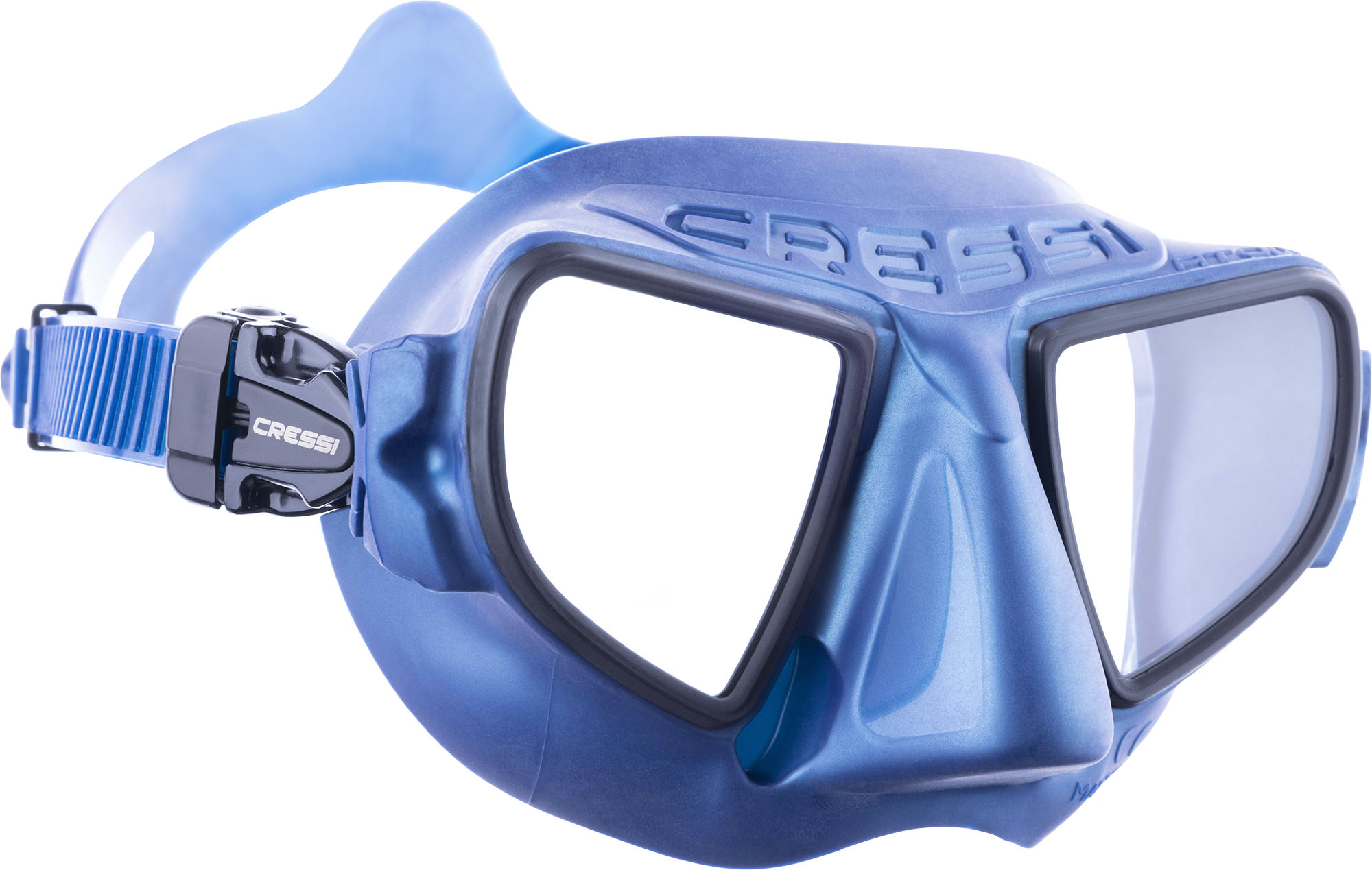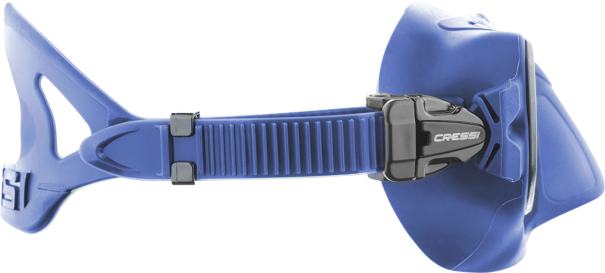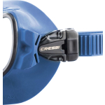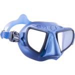 Atom is a radical maks, with incredible low internal volume, thought and built for free-diving. It is a frameless maks. Construction material has been reduced to the minimum. Inside the silicon facial a stiff core is co-stamped with the two lenses, giving just the right rigidity to the maks. This semi-rigid core substitutes the usual external plastic frame and allowed us to reduce the internal volume of the maks in an unseen way until today. Another feature of atom is the ergonomic shape of the nose. Two small cavities, carved by the nostrils, facilitate the action of compensation. This makes the maks extremely stable during the dive. Atom will not move when you compensate pushing atom is the perfect maks for the expert free-diver and spear-fisher, who wants the maximum performance from its gear
