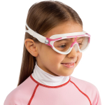 This small-size glass mono goggle is designed for children in order to allow any activity, also play, while maintaining excellent watertightness. The reduced skirt of its structure improves stability on the face as well as grip capacity