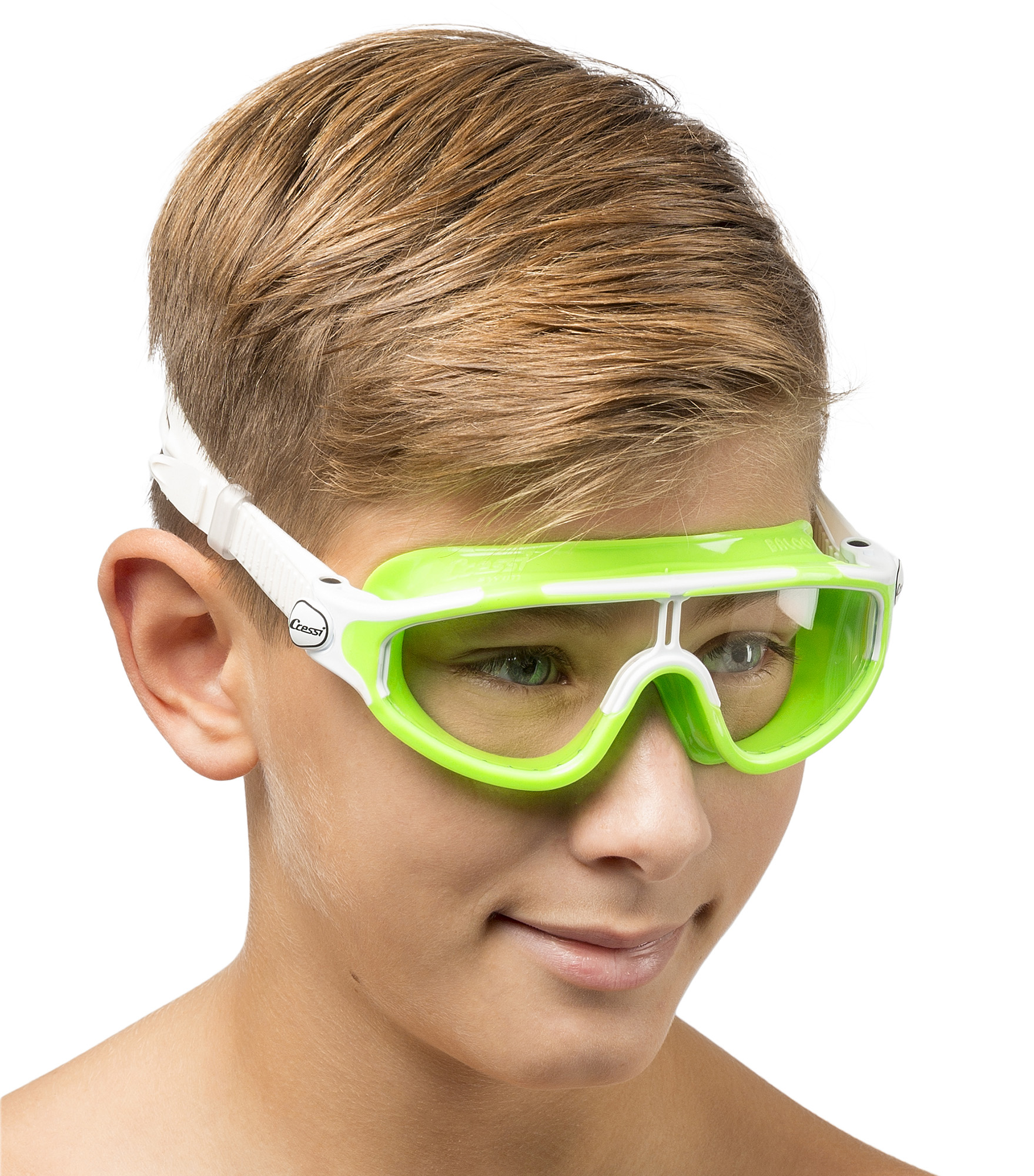This small-size glass mono goggle is designed for children in order to allow any activity, also play, while maintaining excellent watertightness. The reduced skirt of its structure improves stability on the face as well as grip capacity
