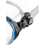Silicone crystal, an incredible new frontier in the world of transparency. It is long-lasting and won’t turn yellow, and thanks to its special chemical composition it drastically reduces the irritating effect of lens fogging. An absolute cressi exclusive. Evolution skirt: to obtain a similar result, double injection technology was used to create the structure of the skirt. This technology is a new dual-injection system that can differentiate the stiffness of the skirt at each point, making it stiffer where needed for a crush-proof structure, and softer where the most comfort is required. The angled lenses, moved as near to the eyes as possible, have increased the matrix’s already incredible view by 25%. The ring capitalizes on cressi’s exclusive patented dual-injection of an elastomer onto a rigid element, which makes it possible to avoid mounting the strap buckles on the structure of the skirt like the competition. Instead, they are mounted on a flexible and indestructible element that pivots on a vertical plane and can be folded completely sideways over 180°. The ring is thinner, in fact even thin enough to disappear completely from view when you wear the masks. Tempered glass lenses. Option for graduated corrective lenses from -1 to -6 diopters, including half diopters