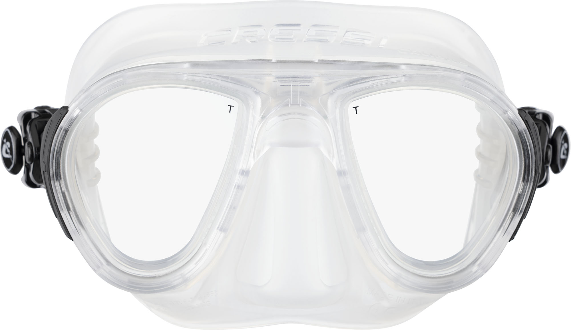 • A patented membrane surrounding the inner nose pocket which acts as a barrier and traps any moisture escaping from the diver’s nose involuntarily when breathing through the mouth. the result is that not only is the moisture channeled away from the lenses, thus avoiding the fogging up of them, but it also reduces the need to compensate for pressure. to further improve the anti-fog effect, cressi suggests, the first times that the dive mask is used, to spray some anti-fog solution or to apply some saliva on the inside of the lenses and then to rinse them with water.