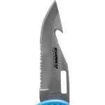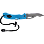 Introducing the Chaku dive knife – the ultimate foldable-blade solution for scuba diving and spearfishing. The blade can be folded manually by pressing the upper lever. Engineered for versatility, its razor-sharp stainless steel flip blade effortlessly handles lines, nets, and vegetation. The wrist strap ensures secure accessibility, adding an extra layer of safety during dives. With dual serrated and smooth blade options, this compact and streamlined knife offers efficient maneuverability without compromising power.