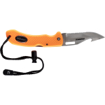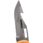 Introducing the Chaku dive knife – the ultimate foldable-blade solution for scuba diving and spearfishing. The blade can be folded manually by pressing the upper lever. Engineered for versatility, its razor-sharp stainless steel flip blade effortlessly handles lines, nets, and vegetation. The wrist strap ensures secure accessibility, adding an extra layer of safety during dives. With dual serrated and smooth blade options, this compact and streamlined knife offers efficient maneuverability without compromising power.