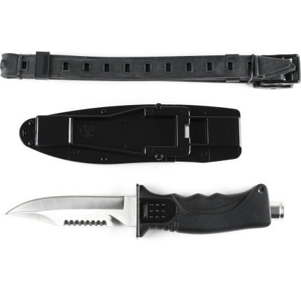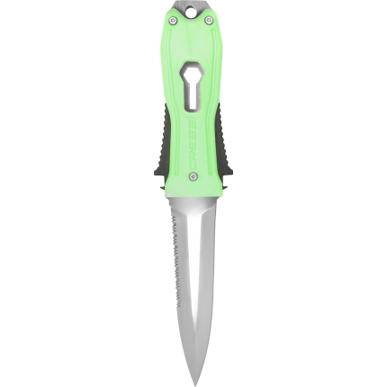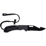 Introducing the Chaku dive knife – the ultimate foldable-blade solution for scuba diving and spearfishing. The blade can be folded manually by pressing the upper lever. Engineered for versatility, its razor-sharp stainless steel flip blade effortlessly handles lines, nets, and vegetation. The wrist strap ensures secure accessibility, adding an extra layer of safety during dives. With dual serrated and smooth blade options, this compact and streamlined knife offers efficient maneuverability without compromising power.