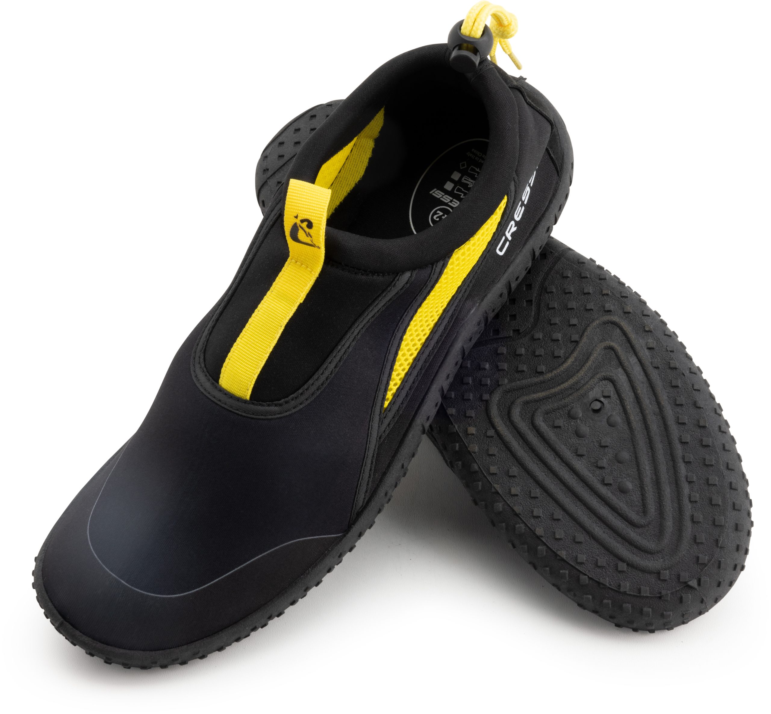 Coco is the Cressi water shoe designed for water sports enthusiasts or for those who want to walk comfortably in wet environments, sea and beach. Made with draining fabrics, this shoe is able to drain excess water and guarantee quick drying. The elastic closure and heel clip ensure a perfect fit on the foot, preventing the shoe from slipping or moving during use. In addition, the ergonomic design and flexible sole ensure a high level of comfort, allowing the shoe to be worn for long hours without tiring the foot