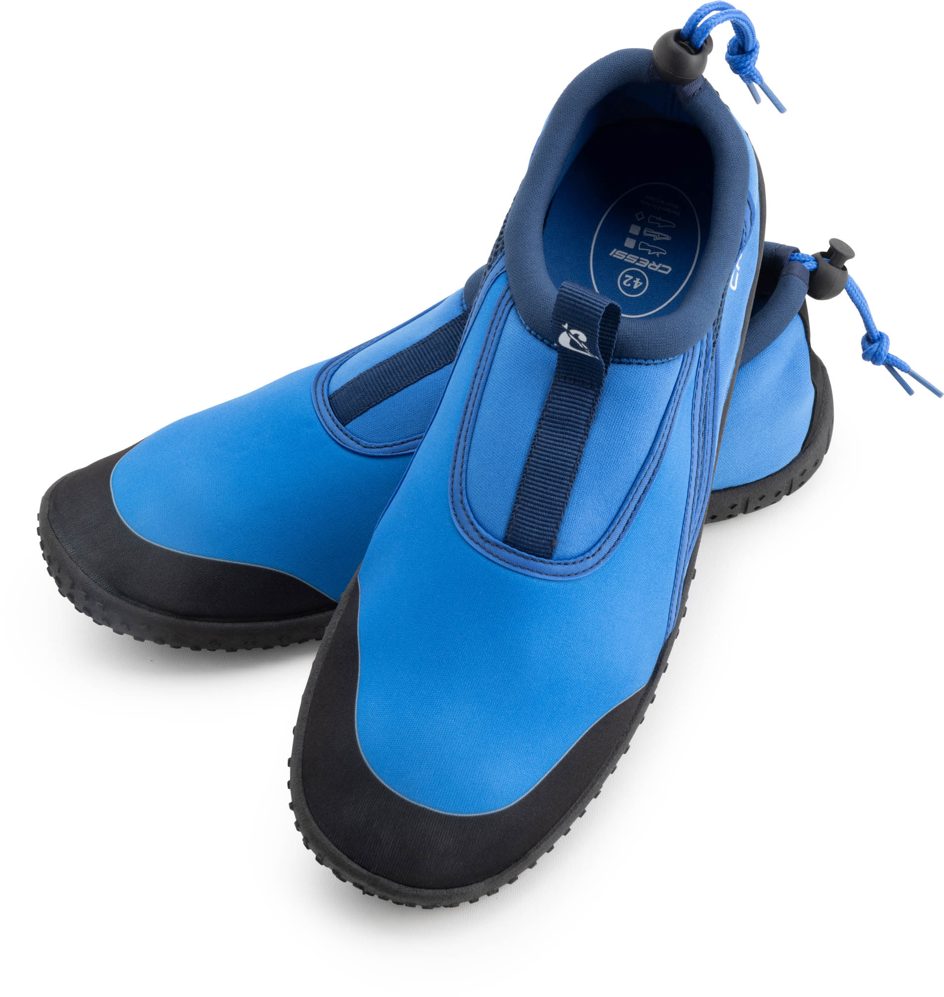 Coco is the Cressi water shoe designed for water sports enthusiasts or for those who want to walk comfortably in wet environments, sea and beach. Made with draining fabrics, this shoe is able to drain excess water and guarantee quick drying. The elastic closure and heel clip ensure a perfect fit on the foot, preventing the shoe from slipping or moving during use. In addition, the ergonomic design and flexible sole ensure a high level of comfort, allowing the shoe to be worn for long hours without tiring the foot