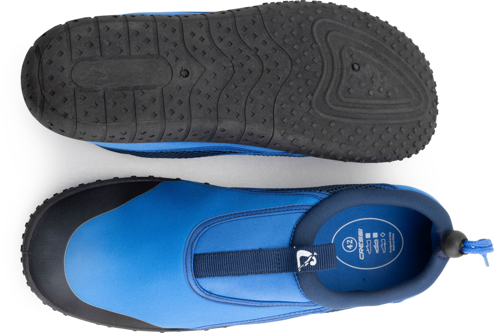 Coco is the Cressi water shoe designed for water sports enthusiasts or for those who want to walk comfortably in wet environments, sea and beach. Made with draining fabrics, this shoe is able to drain excess water and guarantee quick drying. The elastic closure and heel clip ensure a perfect fit on the foot, preventing the shoe from slipping or moving during use. In addition, the ergonomic design and flexible sole ensure a high level of comfort, allowing the shoe to be worn for long hours without tiring the foot