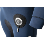 A high-quality YKK zip runs vertically on the back of the suit and a large thigh pocket on the right leg has two compartments and an integrated D-ring for securing accessories. A dedicated hood holder keeps your hood safe between dives (hood sold separately).
