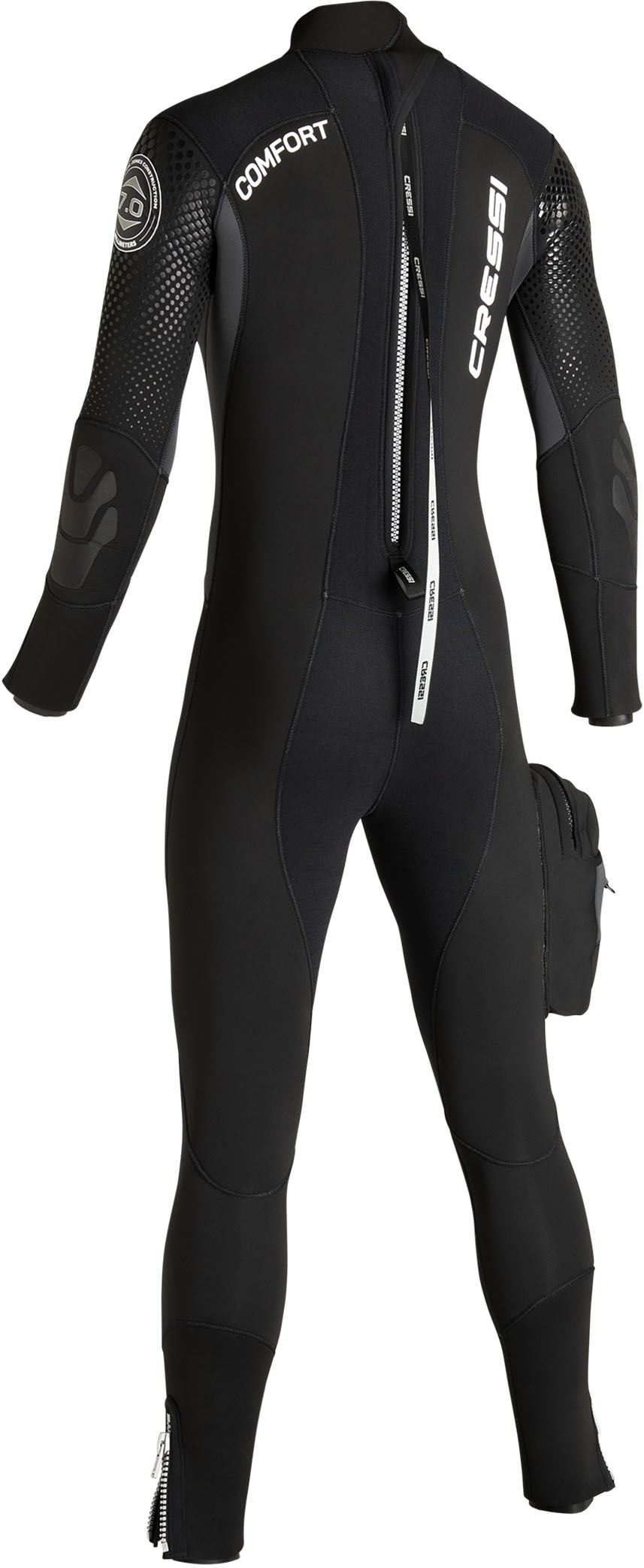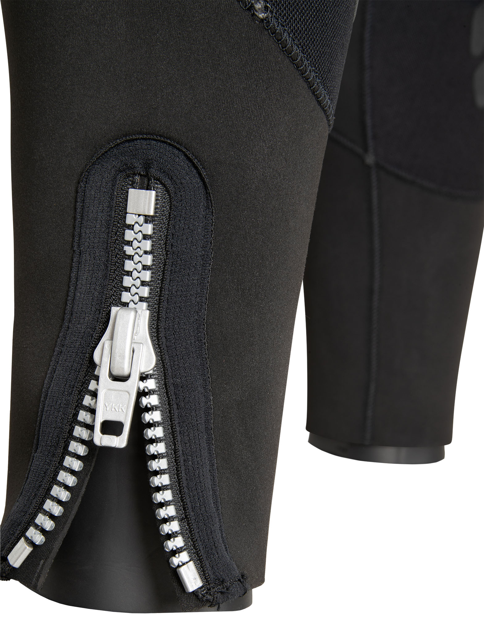 Double-sealed wrist and ankle cuffs feature smooth GlideSkin inner sleeves that sit comfortably against the skin. zips on the wrists and ankles further reduce flushing and improve ease of entry. A high-quality YKK zip runs vertically on the back of the suit.