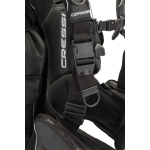 Unlike a pure wing-and-harness setup, the Commander Evo features a cummerbund-style waist strap with integrated weight pockets. Using Cressi’s Flat Lock Aid quick-release design, weights are held securely in place but are easy to release when needed. Rear weight pockets on the cylinder band allow for fine-tuning your trim.