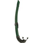 Corsica is a highly technical snorkel designed specifically for deep freediving and spearfishing. The soft bendable large diameter tubing makes it extremely comfortable to properly position behind the head while maintaining ease of breathing on the surface. When diving, the mouthpiece tucks neatly under the chin for the ultimate in hydrodynamics. The anatomical hypoallergenic silicone mouthpiece provides extreme comfort during long durations in the water. The corsica is available in either black or green and is an excellent choice for the discriminating diver who is looking for the best equipment