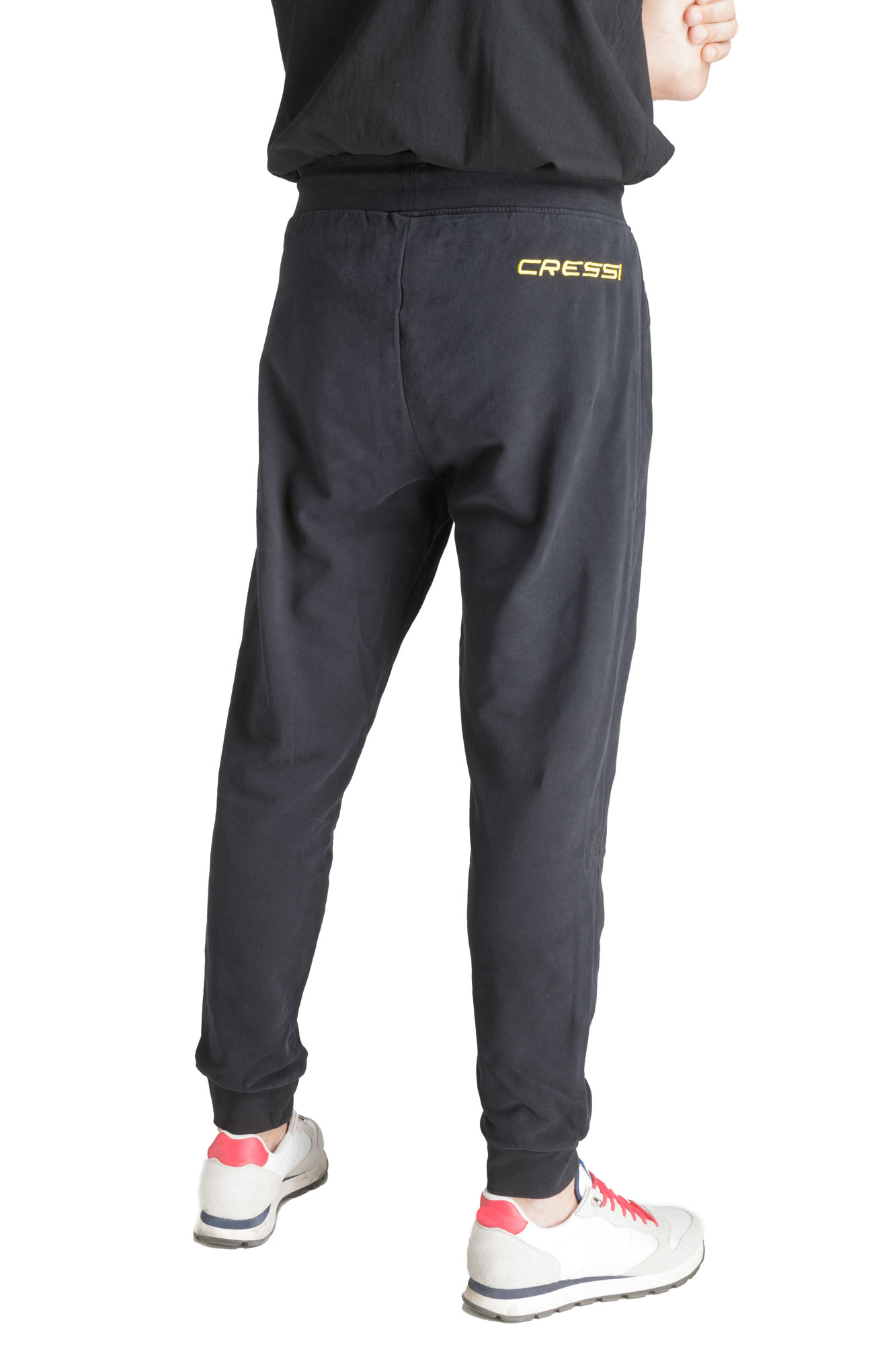 Long sporty sweat pants with pockets, drawstring waist and triangular cressi logo. Made of 95% cotton and 5% elastane fabric. Perfect slim fit for everyone. High-quality machine washable material