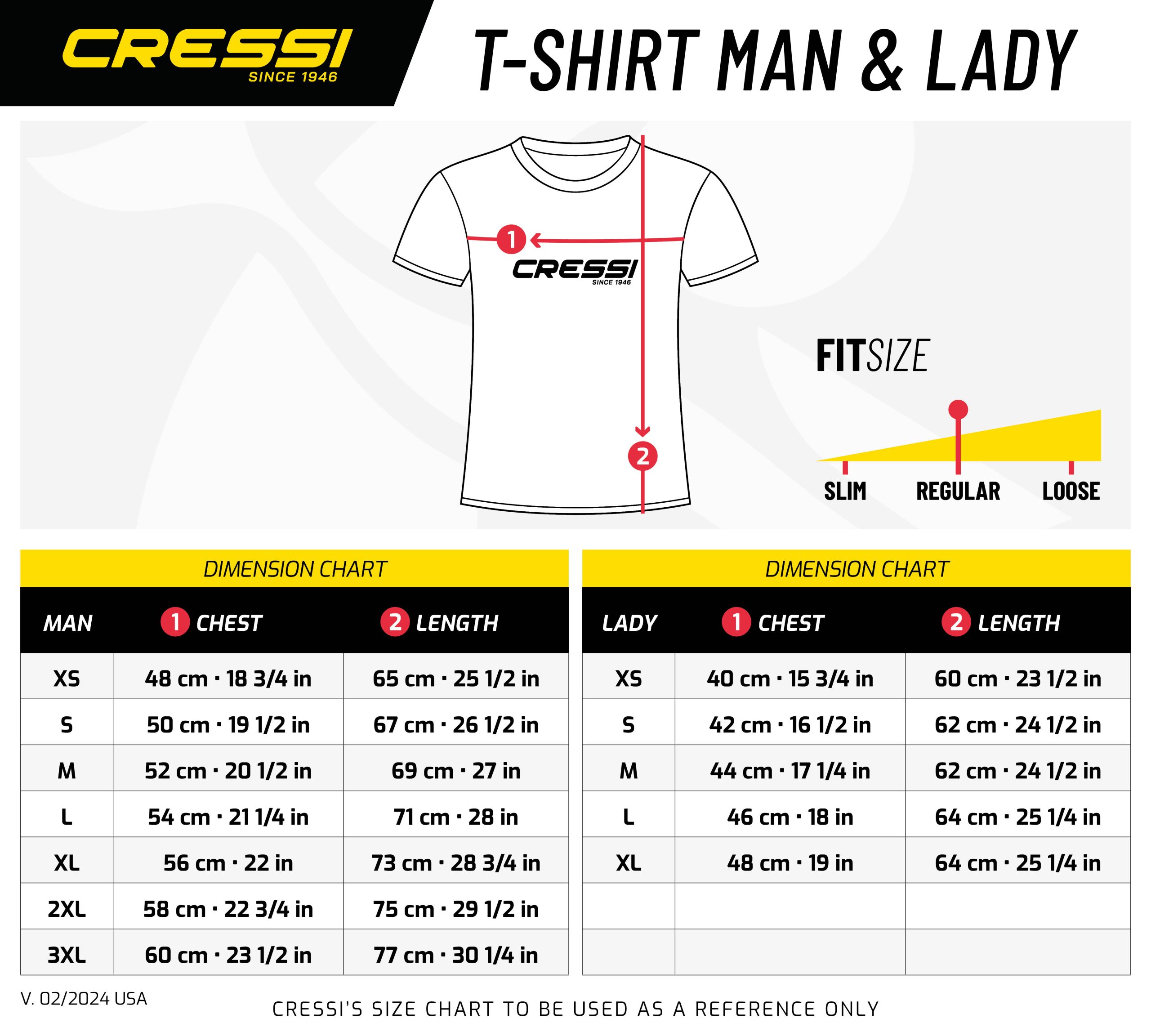 Classic crew neck sports t-shirt with short sleeves. Made of 100% cotton. High quality lightweight and breathable fabric. Cressi logo embossed on chest