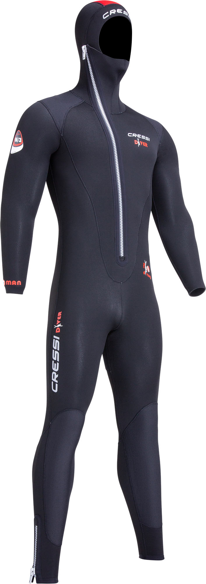 The Cressi Diver is a one-piece neoprene wetsuit with an integrated hood for the whole family, featuring male, female and junior-specific fits.