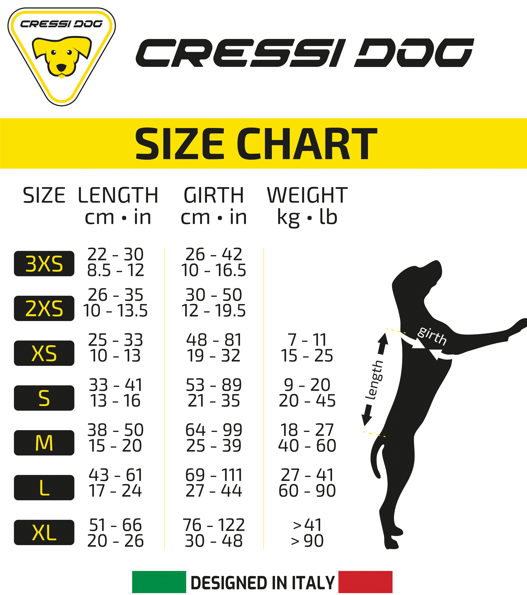 The dog life jacket is a garment of duratex 1000 denier black fabric (like cordura) and polyester 500 denier (goose-beak yellow) specifically designed to keep the animal on the surface or to facilitate it to swim. It is the necessary equipment for rescue dogs in water and is very useful for rehabilitation. It has a practical ring for the leash and a comfortable handle (three in sizes l-xl) to facilitate the recovery of the dog when you are on the boat. The jacket has been exactly achieved to keep the dog in the correct swimming position and to facilitate its movements, both when it is submerged and on the surface. The life jacket is ergonomic, comfortable and easy to wear. The 7 sizes range is from micro 2xs to xl. This product has also been designed to be used over the cressi dog wetsuit, which further increases the dog’s protection against the cold