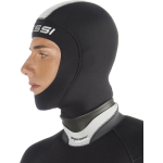 Anatomic design smooth neoprene hood, available in 5 or 3 mm thickness, equipped with watertight seals around face and neck. It’s recommended for frontal zip one-piece wetsuits. Integrated system for air / water discharge in the upper part of the hood