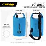 Cressi Dry Bag is a waterproof bag that’s great for protecting items and clothing from sand, soil, water, and snow. To close it, roll it down from the top and fasten the buckle. It is very easy to transport using the handy shoulder strap. Ideal for carrying your suit, fins, and mask, even when they’re wet. Do not submerge the bag! Available in a range of colors.