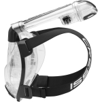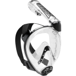 Full-face mask for snorkeling: designed with extremely high-quality materials and technology. You can explore the world underwater, breathing naturally through the nose and mouth with 0% effort. Its visual field is 30% larger than normal full face mask. The new air baffle completely eliminates fogging. It features special safety valves for purging water. The snorkel features a special dry system that keeps water out