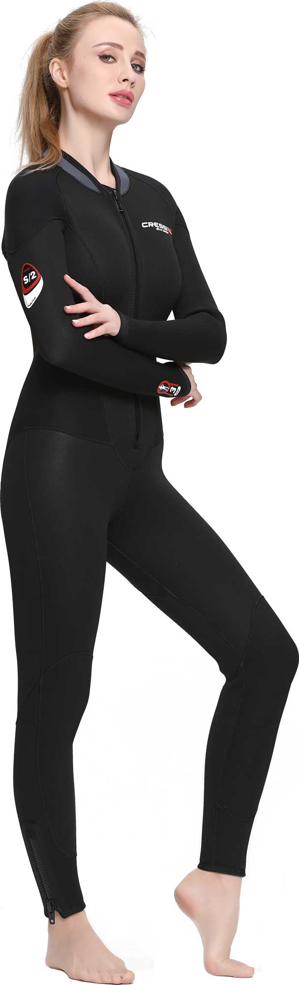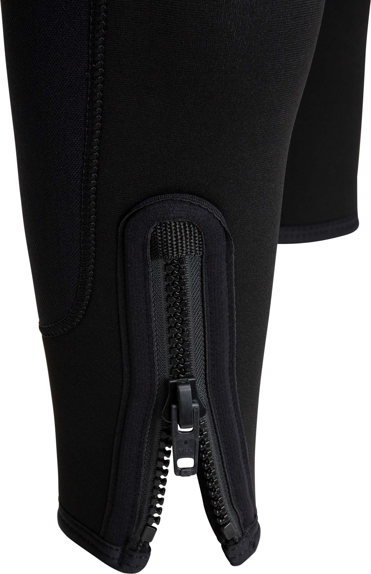 • Zips on the ankle cuffs make it easier to get in and out of the wetsuit.