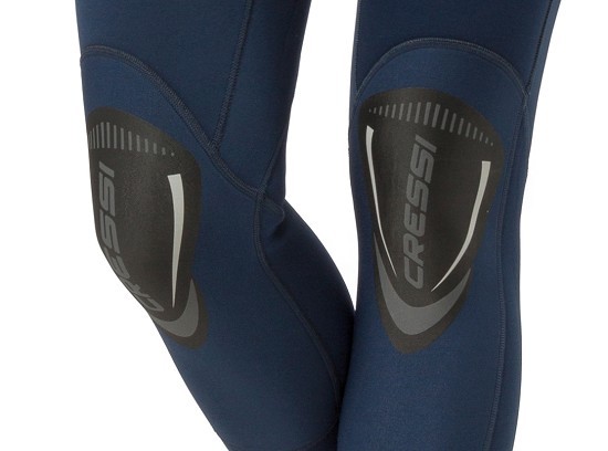 The knees are reinforced with an anti-abrasion coating, protecting against repeated movement and contact with rough surfaces, without compromising neoprene flexibility over the knee area.