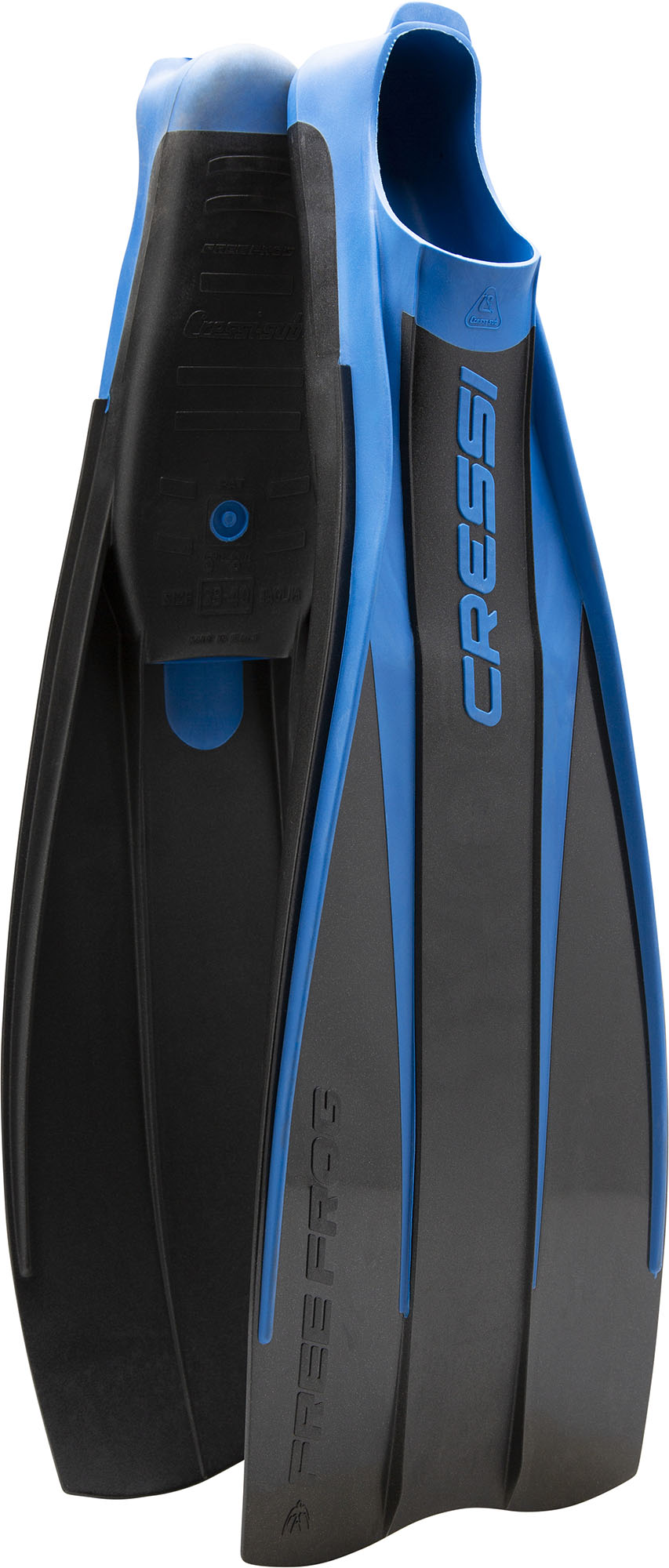 The free frog is back! the fin has been remade with the new molding technology. The foot pocket has been improved to fit better to most different foot shapes. The free frog enjoys the exclusive characteristics of the cressi diving fins maintaining the spirit of the legendary frog. It features a below blade foot pocket in order to have a bigger surface that increasing the kicking thrust. It is manufactured in a variant of low-modulus polypropylene that, combined with a particular structure, combines great flexibility, softness, and resistance to a demanding use (even as in rent and school in a diving center), durability and an unprecedented aesthetics in fins projected with this philosophy