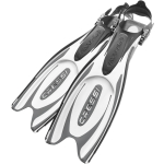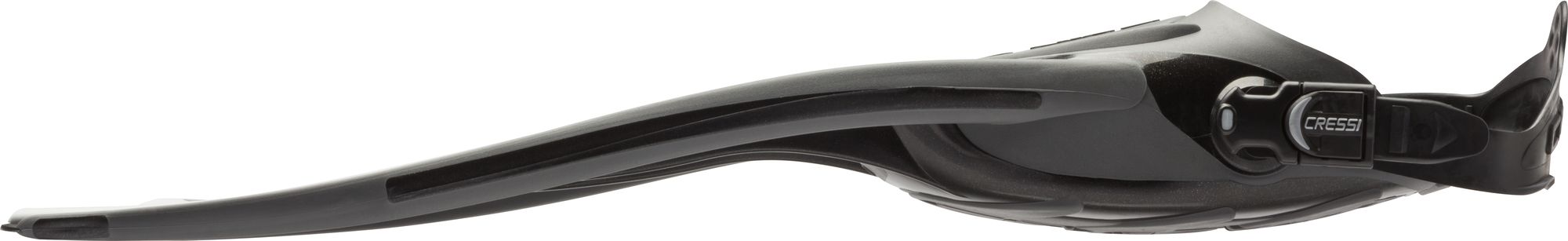 The frog plus utilizes cressi’s patented three material injection molding process. The three materials consist of a nice comfortable rubber on the foot pocket that extends up the side rails of the blade. The second material is the revolutionary new dual density techno polymer which forms the blade, and in conjunction with the third silicone based material creates a channeling effect. Cressi’s latest addition to its extensive line of world renowned fins is the frog plus open heel scuba diving fin. The frog plus features many of the great characteristics of a traditional paddle fin along with introducing a revolutionary new blade material that is both extremely durable and nearly indestructible