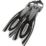 The frog plus utilizes cressi’s patented three material injection molding process. The three materials consist of a nice comfortable rubber on the foot pocket that extends up the side rails of the blade. The second material is the revolutionary new dual density techno polymer which forms the blade, and in conjunction with the third silicone based material creates a channeling effect. Cressi’s latest addition to its extensive line of world renowned fins is the frog plus open heel scuba diving fin. The frog plus features many of the great characteristics of a traditional paddle fin along with introducing a revolutionary new blade material that is both extremely durable and nearly indestructible