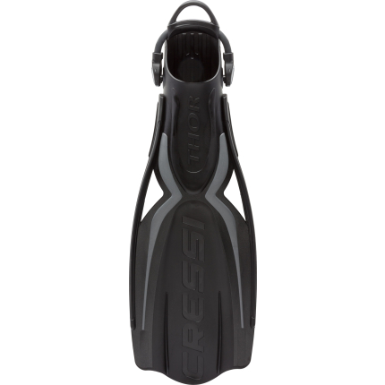 The frog plus utilizes cressi’s patented three material injection molding process. The three materials consist of a nice comfortable rubber on the foot pocket that extends up the side rails of the blade. The second material is the revolutionary new dual density techno polymer which forms the blade, and in conjunction with the third silicone based material creates a channeling effect. Cressi’s latest addition to its extensive line of world renowned fins is the frog plus open heel scuba diving fin. The frog plus features many of the great characteristics of a traditional paddle fin along with introducing a revolutionary new blade material that is both extremely durable and nearly indestructible
