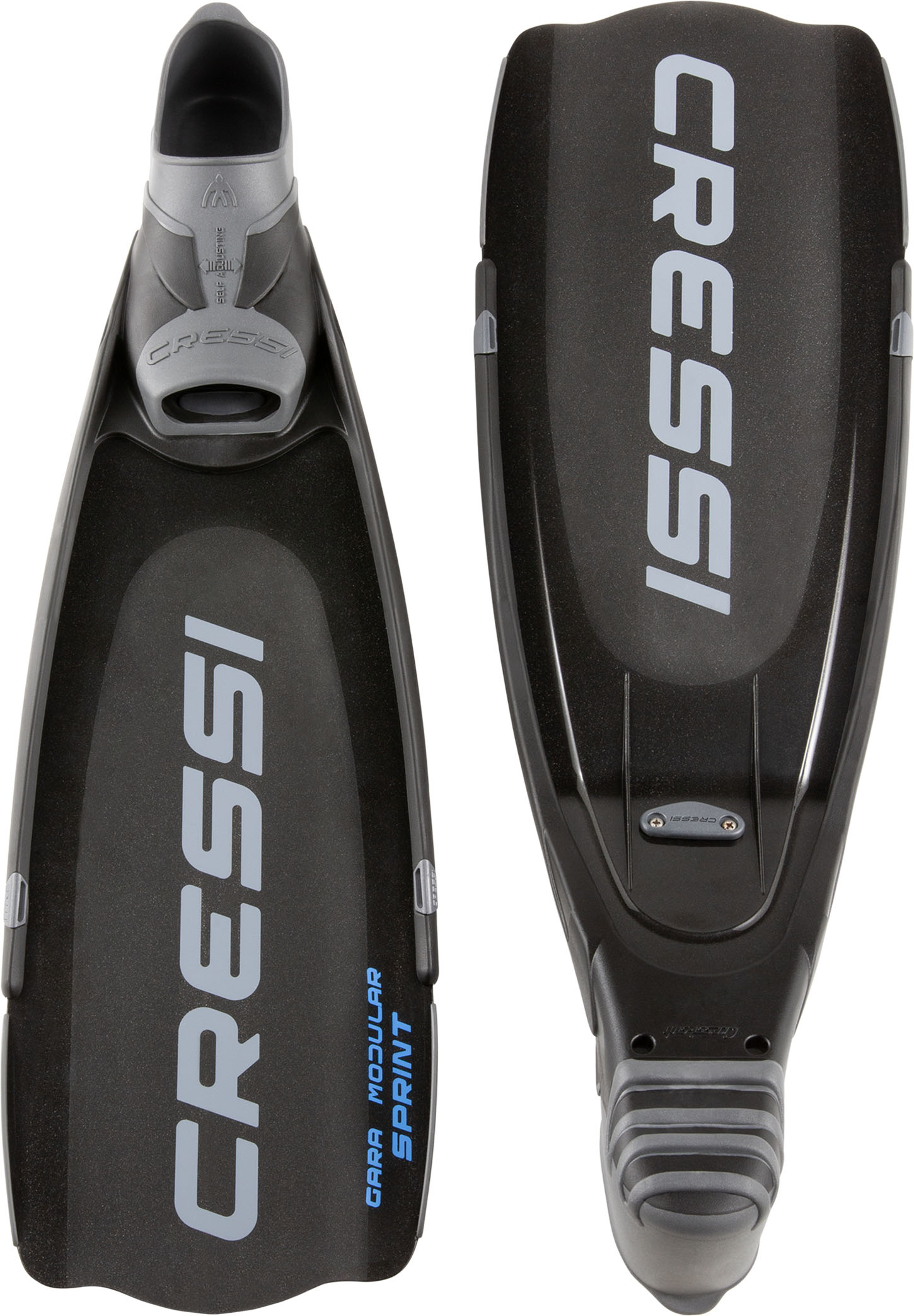 The new gara modular sprint fin is a shorter version of the impulse fin, which proved to be hugely popular with freedivers worldwide, both amateurs and the most demanding professional freedivers. This is also confirmed by the large number of articles dedicated to it by specialized journalists in sector magazines. Sprint is designed to meet the needs of freedivers and spearfishers who practice this sport in wintertime and when a fin as long as impulse is not necessary. Both fins have been designed using expensive finite element software programs that allow highly complex and equally high-performance sections to be defined. The blade of sprint, like the impulse blade, is made of a single thermoplastic elastomer, although it would be more correct to refer to an angled sublayer and an overlay. The sublayer follows the shape and dimensions of almost the entire fin. It has a uniform thickness and a flexible longitudinal propulsion wing of variable length. In contrast, the so-called overlay covers the propulsion wing selectively and has a thickness that slopes from the maximum value to zero longitudinally towards the tip of the blade. As a result, the fin offers a new way of storing and releasing elastic potential energy, greatly assisting movement of the freediver’s legs and thus guaranteeing a net improvement in propulsive output. When disassembled, the blade and foot pocket occupy the space of a normal snorkeling fin