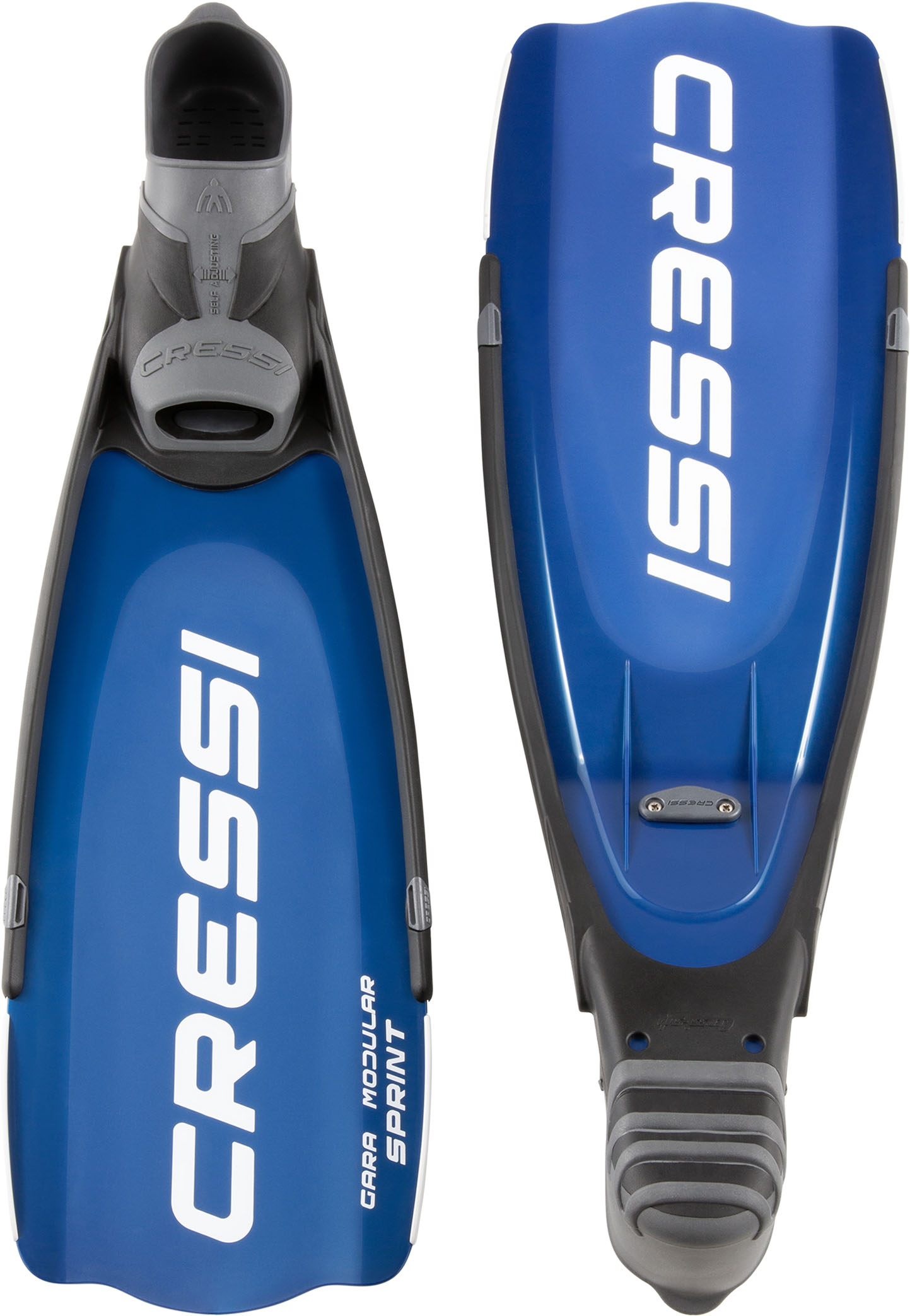 The new gara modular sprint fin is a shorter version of the impulse fin, which proved to be hugely popular with freedivers worldwide, both amateurs and the most demanding professional freedivers. This is also confirmed by the large number of articles dedicated to it by specialized journalists in sector magazines. Sprint is designed to meet the needs of freedivers and spearfishers who practice this sport in wintertime and when a fin as long as impulse is not necessary. Both fins have been designed using expensive finite element software programs that allow highly complex and equally high-performance sections to be defined. The blade of sprint, like the impulse blade, is made of a single thermoplastic elastomer, although it would be more correct to refer to an angled sublayer and an overlay. The sublayer follows the shape and dimensions of almost the entire fin. It has a uniform thickness and a flexible longitudinal propulsion wing of variable length. In contrast, the so-called overlay covers the propulsion wing selectively and has a thickness that slopes from the maximum value to zero longitudinally towards the tip of the blade. As a result, the fin offers a new way of storing and releasing elastic potential energy, greatly assisting movement of the freediver’s legs and thus guaranteeing a net improvement in propulsive output. When disassembled, the blade and foot pocket occupy the space of a normal snorkeling fin