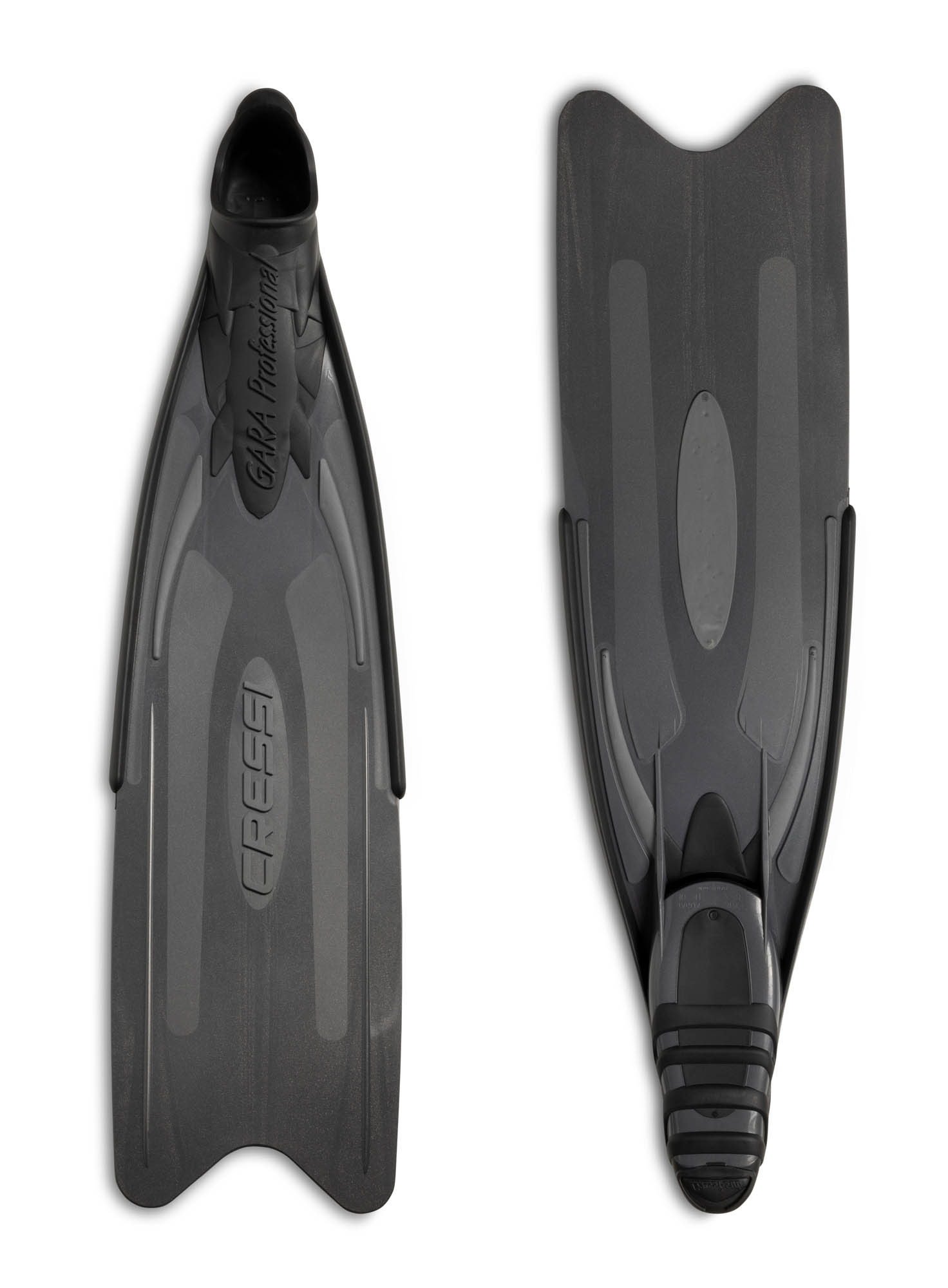 After the huge success of the gara professional, cressi has also thought of people who want to take advantage of all the top features of the gara professional, but with a less demanding finning action. The blade is made with a special elastomeric polypropylene that allows for a more fluid, softer, and less tiring kick that can be maintained over time, making it great for covering long distances. The use of this new technopolymer, which is less reactive and vigorous than the compoflex used in the gara professional, ensures progressive blade flexibility that’s easily controlled, translating into a very fluid finning action. Paired with its exceptional lightness and absolutely no wasted effort, the result is an extremely effective and pleasant finning action. On a par with the other gara fins (2000 hp– 3000 ld – gara professional) in the cressi line, the gara professional lds can boast an industrial manufacturing system that guarantees very high standards of precision and compliance with demanding technical parameters that cannot be achieved with traditional methods of craftsmanship. The new footpocket in the gara professional ld was designed to be located below the blade. This characteristic, combined with a perfect union of foot and blade, helps reduce as far as possible both propulsive effort and loss of energy during the finning action. The structure of the footpocket was re-engineered, and even further improves upon the already wildly popular footpockets in the cressi gara line. The use of an especially soft new elastomer makes it even more comfortable