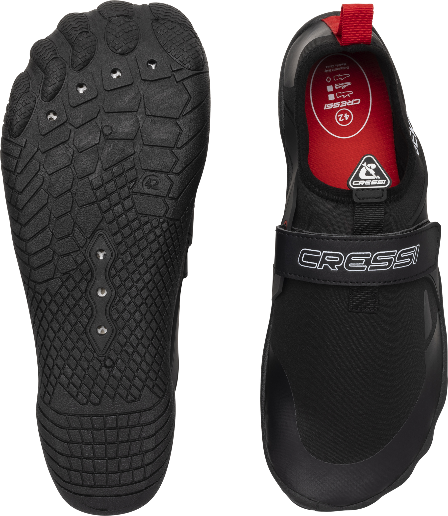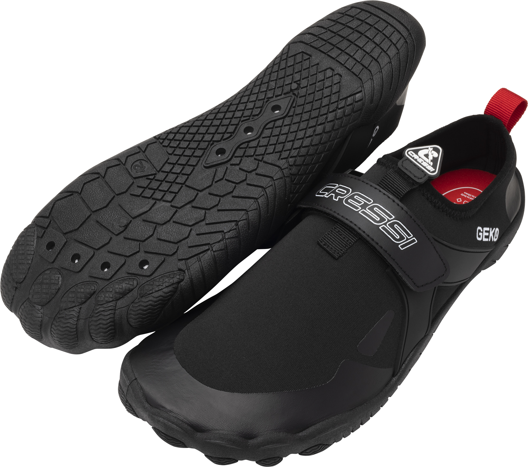 The Geko shoe is the ideal choice for those seeking an immersive connection with the aquatic environment. Featuring a contoured sole and optimal grip, each step provides an exceptional sense of adherence to the seabed without compromising comfort. With a convenient Velcro fastener, this shoe ensures a secure and customizable fit, adapting seamlessly to all foot types. Upper with precision wrap-around reinforcements, offering optimal support during sports activities in the water. The contoured sole precisely mimics the foot and toe shape, offering exceptional traction and heightened sensitivity to the seabed. Strategically placed perforations in the sole facilitate rapid water drainage, ensuring quick drying and perspiration.