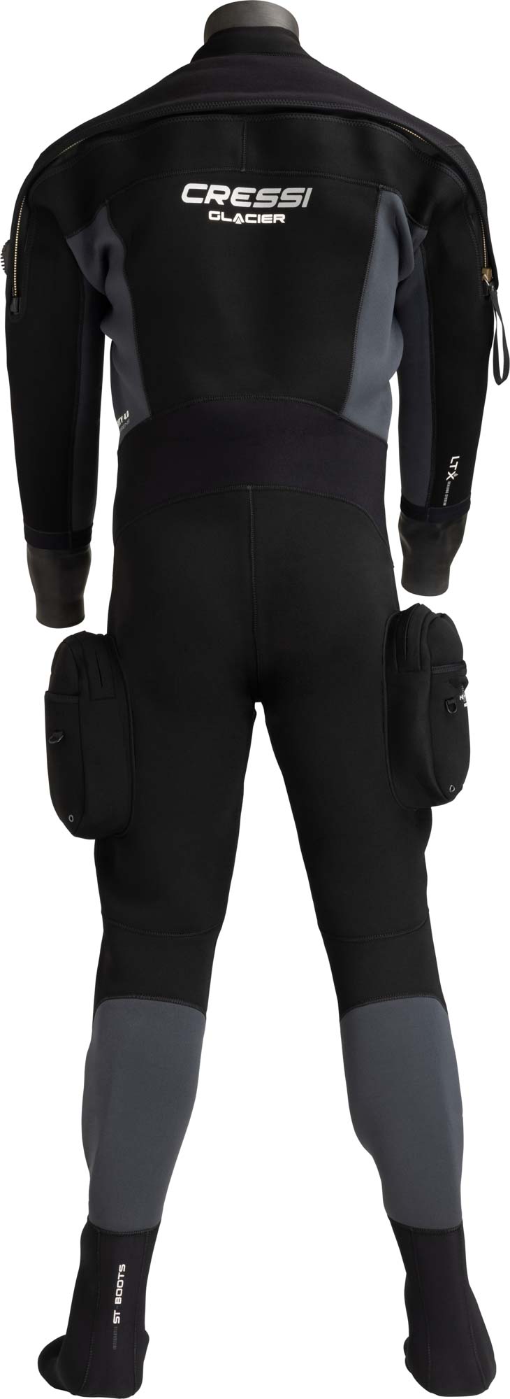 For added comfort, the Glacier features soft neoprene socks, and internal braces that support the suit on the surface between dives. Two spacious leg pockets provide plenty of storage for accessories and backup gear.