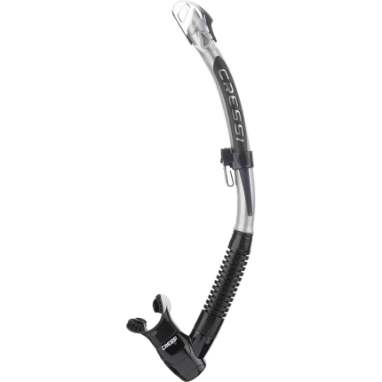 Gringo is a traditional snorkel used for all types of diving. This snorkel provides excellent surface breathing properties due to its fairly straight tubing with minimal curves to maintain a proper position around the head. The multi-positional soft silicone swivel mouthpiece can be tuned at any angle to provide extreme comfort during long durations in the water
