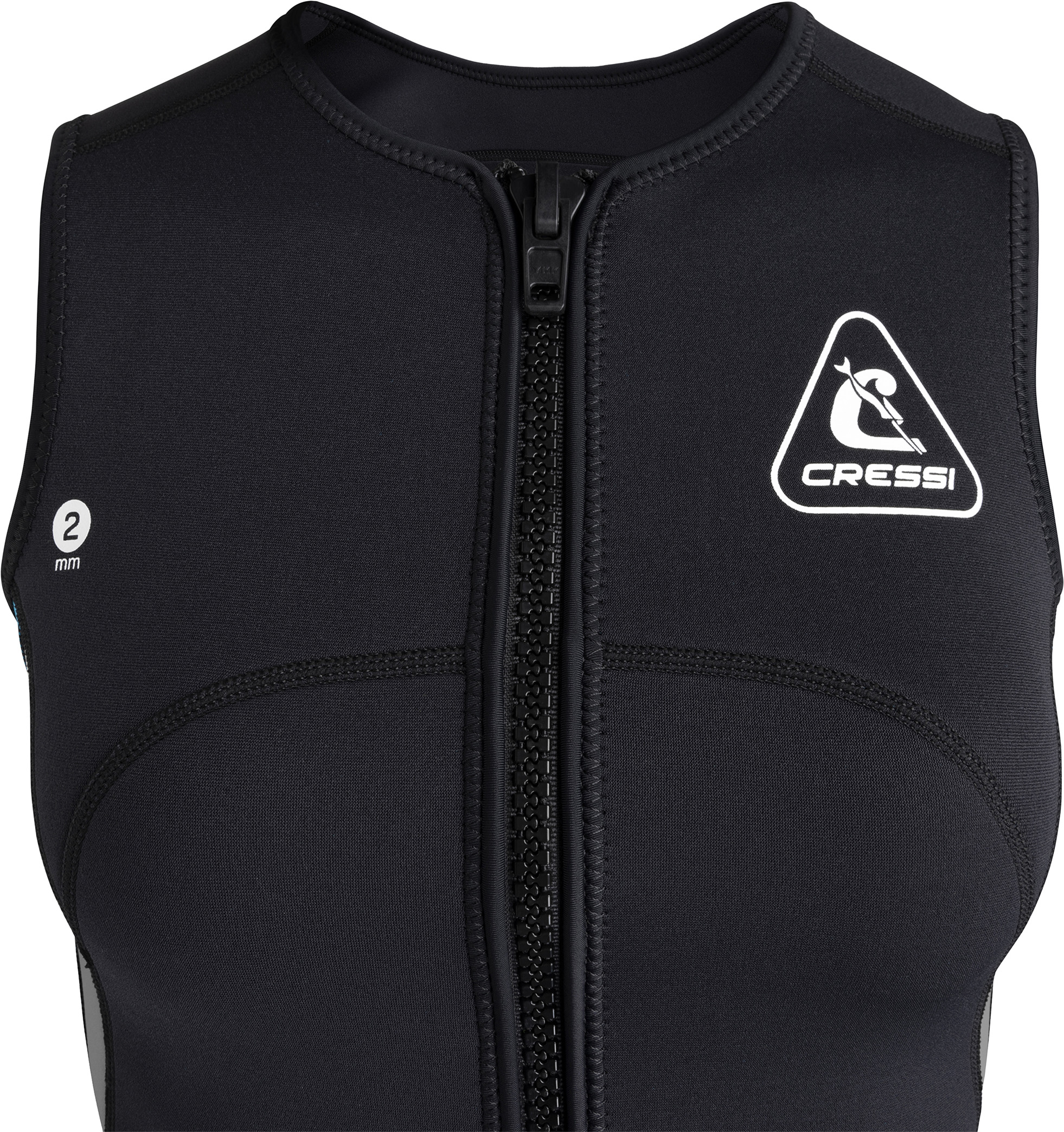 The Guardian Neoprene Gilet for adults is crafted from high-quality, 2mm double-lined elastic neoprene with flatlock stitching, making it more flexible, comfortable, soft, and durable. This gilet offers an incredibly stretchy, comfortable, and snug fit for swimming, snorkeling, and other water sports. It provides excellent sun protection and helps prevent injuries. The sleeveless design ensures full range of motion while shielding your core from sunburn and abrasions. Featuring a front YKK plastic zipper, the gilet is easy to put on and take off. It conforms to your body, offering greater freedom of movement, making it perfect for all your aquatic adventures.