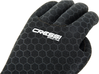 5-finger gloves made from single-lined soft, highstretch neoprene. The inside is covered in metallite to make them easy to put on. The preformed shape favours the natural position of the hand, with semi-bent fingers. The entire surface is covered with a non-slip finish for a sure grip in all situations