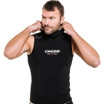 The Cressi Hood Vest is a sleeveless neoprene base layer with an integrated hood. It can be layered under a wetsuit for extra insulation in cooler waters, or worn alone in warm conditions.