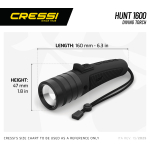The Hunt torch, specifically developed for spearfishing, combines power and functionality in an ergonomically advanced design. Equipped with a Luminus SST40 LED, it emits a brightness of 1600 lumens and a light beam that reaches over 290 meters (in air), perfect for environments with limited visibility.