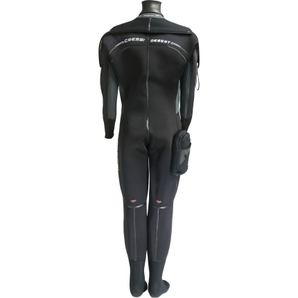 Glacier is a 4mm precompressed high-density neoprene, heavy duty, dry-suit. The main feature of Glacier is in its collar and wrist sealing. It is made of latex. This ensures the best adherence possible to your body and minimizes the chance of water leaking in the suit. Both collar and wrist sealing are customizable. Have them cut to your precise size to have a perfect fit. Collar and wrists are replaceable too, in case they wear out or accidentally tear. Glacier features a second 1,5 mm neoprene collar, for additional thermal protection. Shoulders, back, hips and knees are reinforced with X-Diamond pad material, making this dry-suit very resistant to abrasion. The feet are made of soft and elastic neoprene for a comfortable fit. Inside the dry-suit a pair of suspenders will hold the suit in place when it is open. The zip is covered by a neoprene flap. The charging valve is activated by a side button, while the deflating valve is adjustable. Glacier features two large pockets on the sides of the legs to comfortably place the additional gear you want to carry with you underwater.