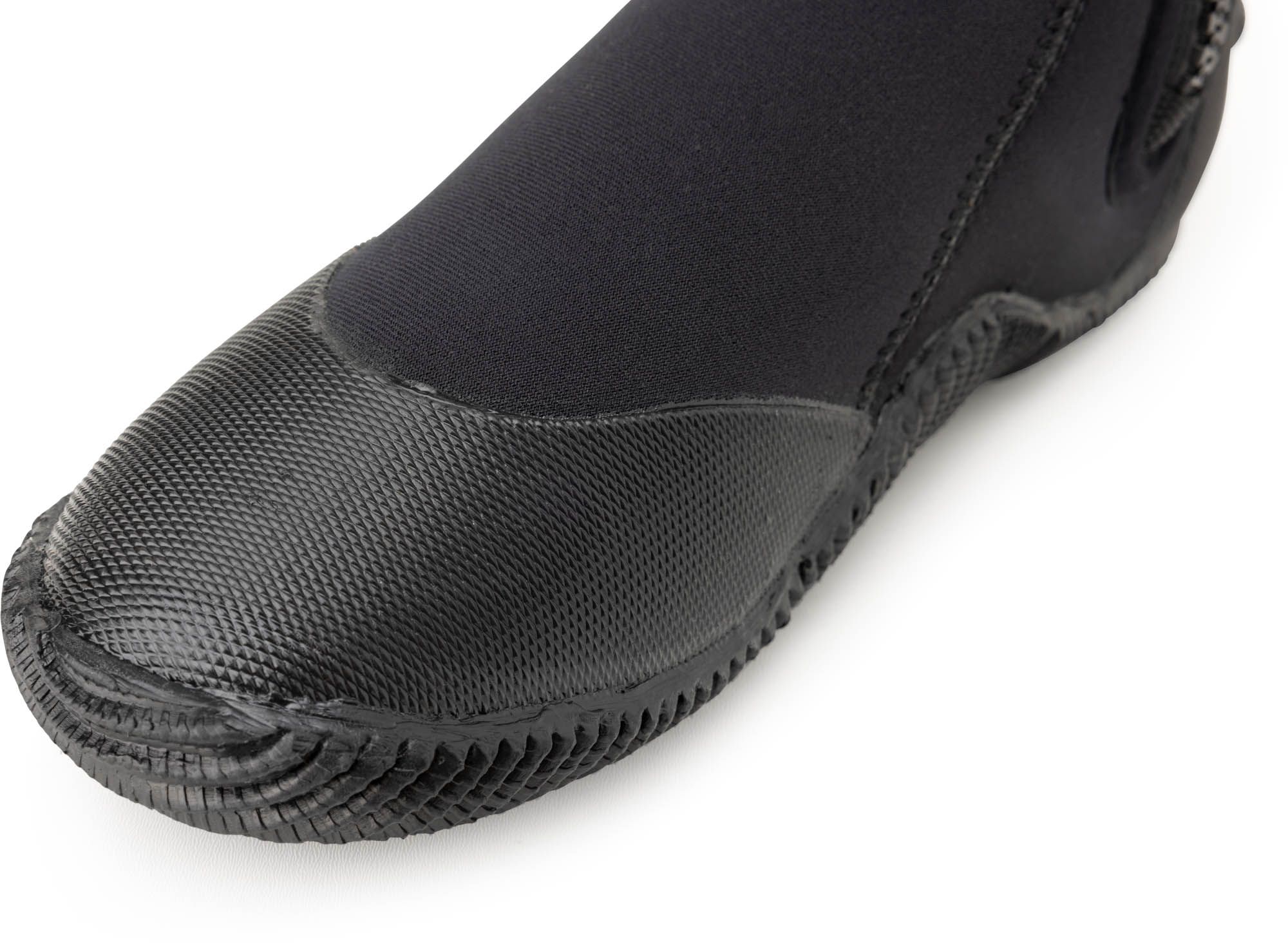 These boots are suitable for any kind of water sports to keep the feet warm. The back of the heel has a special design that fits perfectly with open heel fins for scuba diving. The small boss is used to prevents the slipping of the fins strap. Both the toe and the heel are reinforced with long-lasting rubber and provide protection against wear and tear. They are made from soft, double-lined neoprene and have a practical zip from the sole to the ankle, making them easy to slip on and off. Water seepage is reduced to the minimum thanks to a thin flap seal under the zip, which acts as an effective barrier against any water that may seep through the zip. A strong non-slip molding covers the entire sole. Available in 3,5 mm 5 mm and 7 mm neoprene thickness