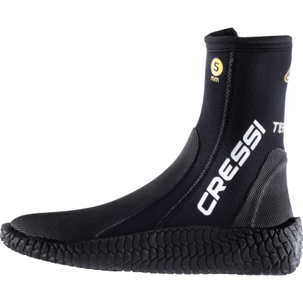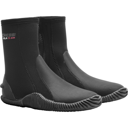 These boots are suitable for any kind of water sports to keep the feet warm. The back of the heel has a special design that fits perfectly with open heel fins for scuba diving. The small boss is used to prevents the slipping of the fins strap. Both the toe and the heel are reinforced with long-lasting rubber and provide protection against wear and tear. They are made from soft, double-lined neoprene and have a practical zip from the sole to the ankle, making them easy to slip on and off. Water seepage is reduced to the minimum thanks to a thin flap seal under the zip, which acts as an effective barrier against any water that may seep through the zip. A strong non-slip molding covers the entire sole. Available in 3,5 mm 5 mm and 7 mm neoprene thickness