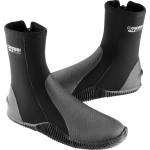 These boots are suitable for any kind of water sports to keep the feet warm. The back of the heel has a special design that fits perfectly with open heel fins for scuba diving. The small boss is used to prevents the slipping of the fins strap. Both the toe and the heel are reinforced with long-lasting rubber and provide protection against wear and tear. They are made from soft, double-lined neoprene and have a practical zip from the sole to the ankle, making them easy to slip on and off. Water seepage is reduced to the minimum thanks to a thin flap seal under the zip, which acts as an effective barrier against any water that may seep through the zip. A strong non-slip molding covers the entire sole. Available in 3,5 mm 5 mm and 7 mm neoprene thickness