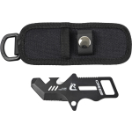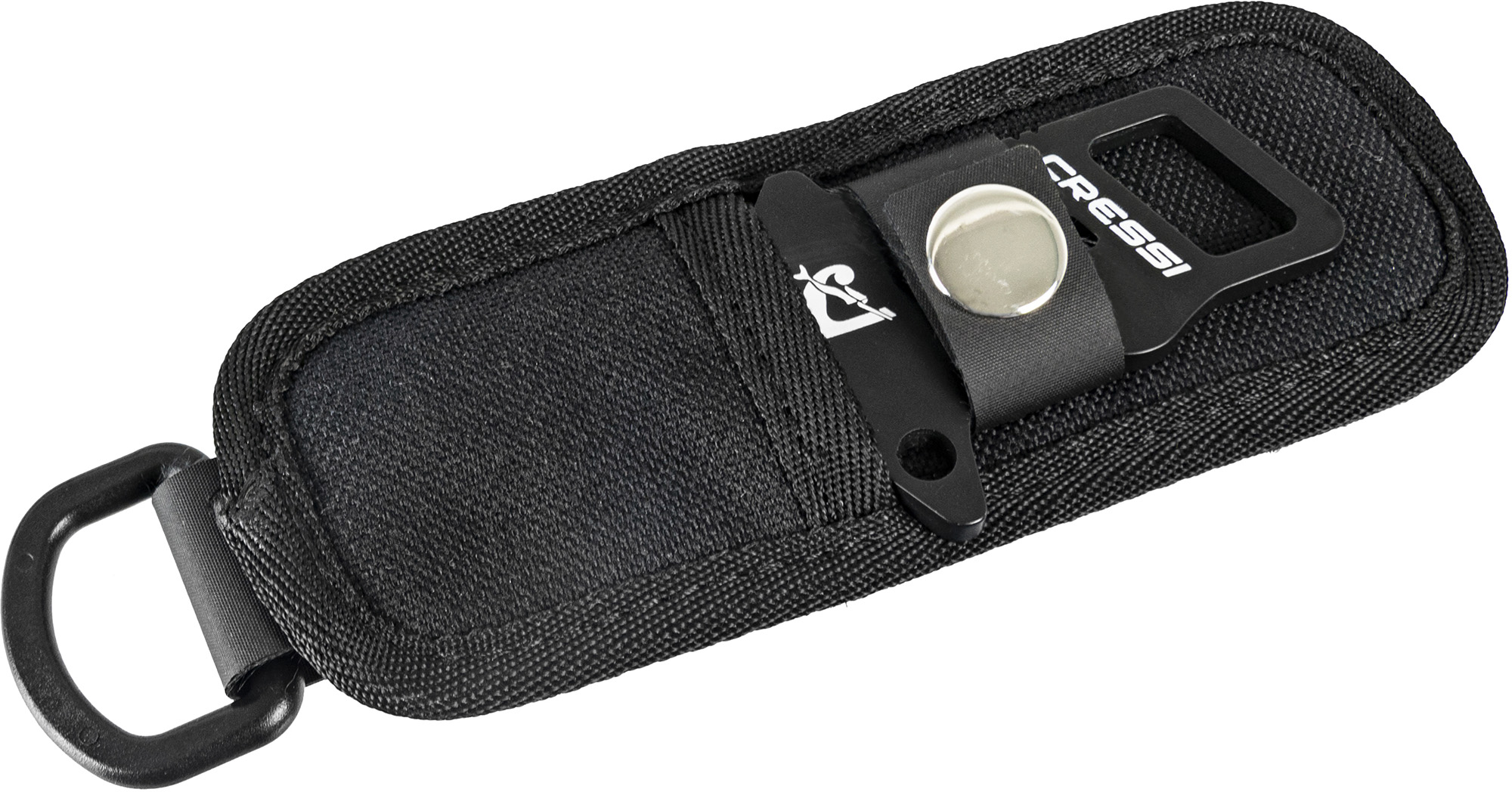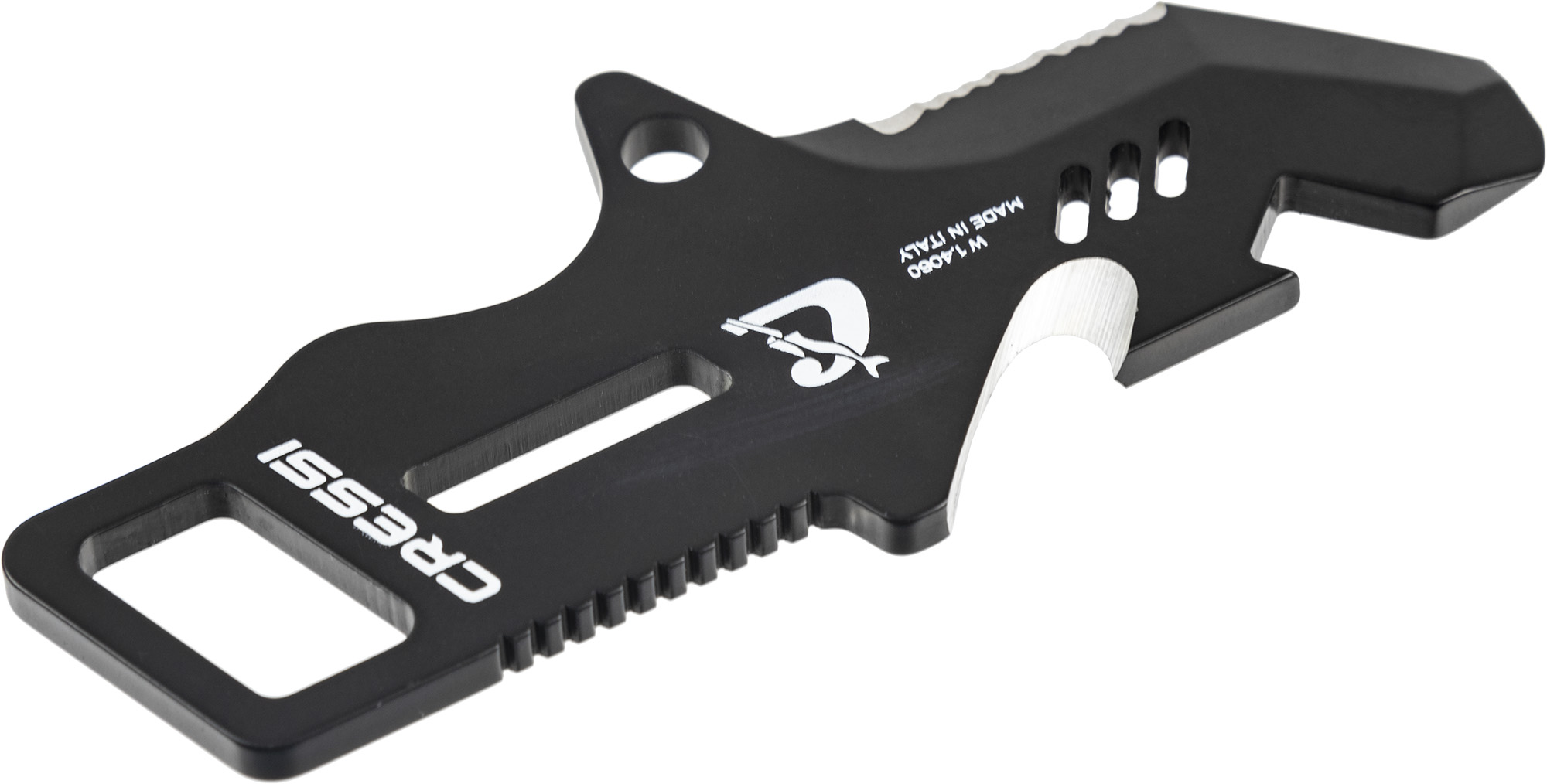 Italian-made professional diver’s compact multitool, with blade and handle in w 1. 4060 martensitic stainless steel, hardness hrc 55/56, for an extremely sharp and honed blade. It has a v-shaped cross section blade and is equipped with a saw, a line cutter, abottle opener and a loop for the leash. The idroglider gold black surface treatment increases resistance to corrosion in marine environments. Equipped with a 1000 d ballistic nylon sheath and neoprene leg bands and armbands in several sizes to perfect fits