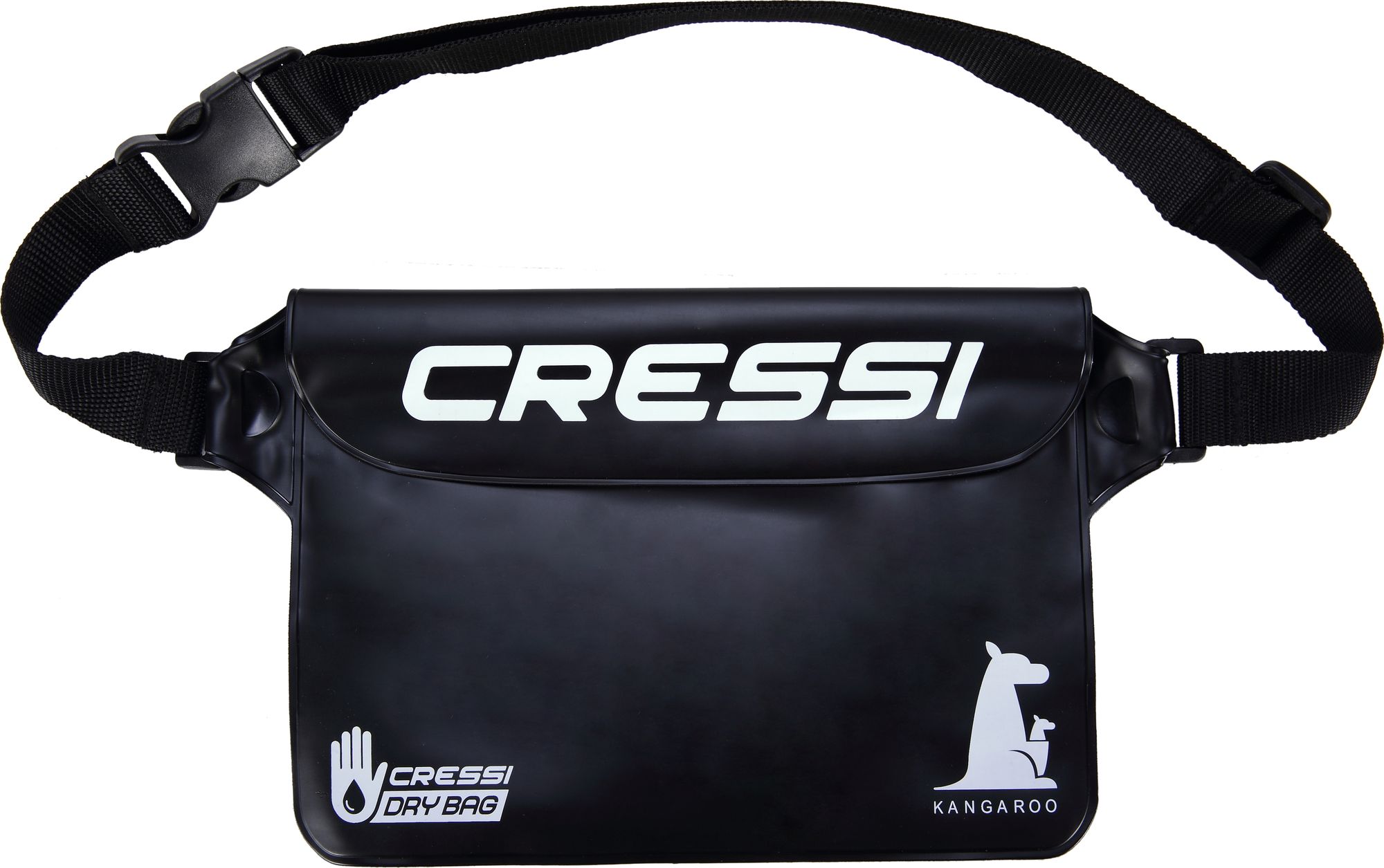 Cressi kangaroo is a water resistant pack/bumbag in high-quality pvc. Perfect for scuba diving, fishing, sailing, water sports, and outdoor activities. Practical and lightweight, it features a handy closure. It protects your devices and documents from the water