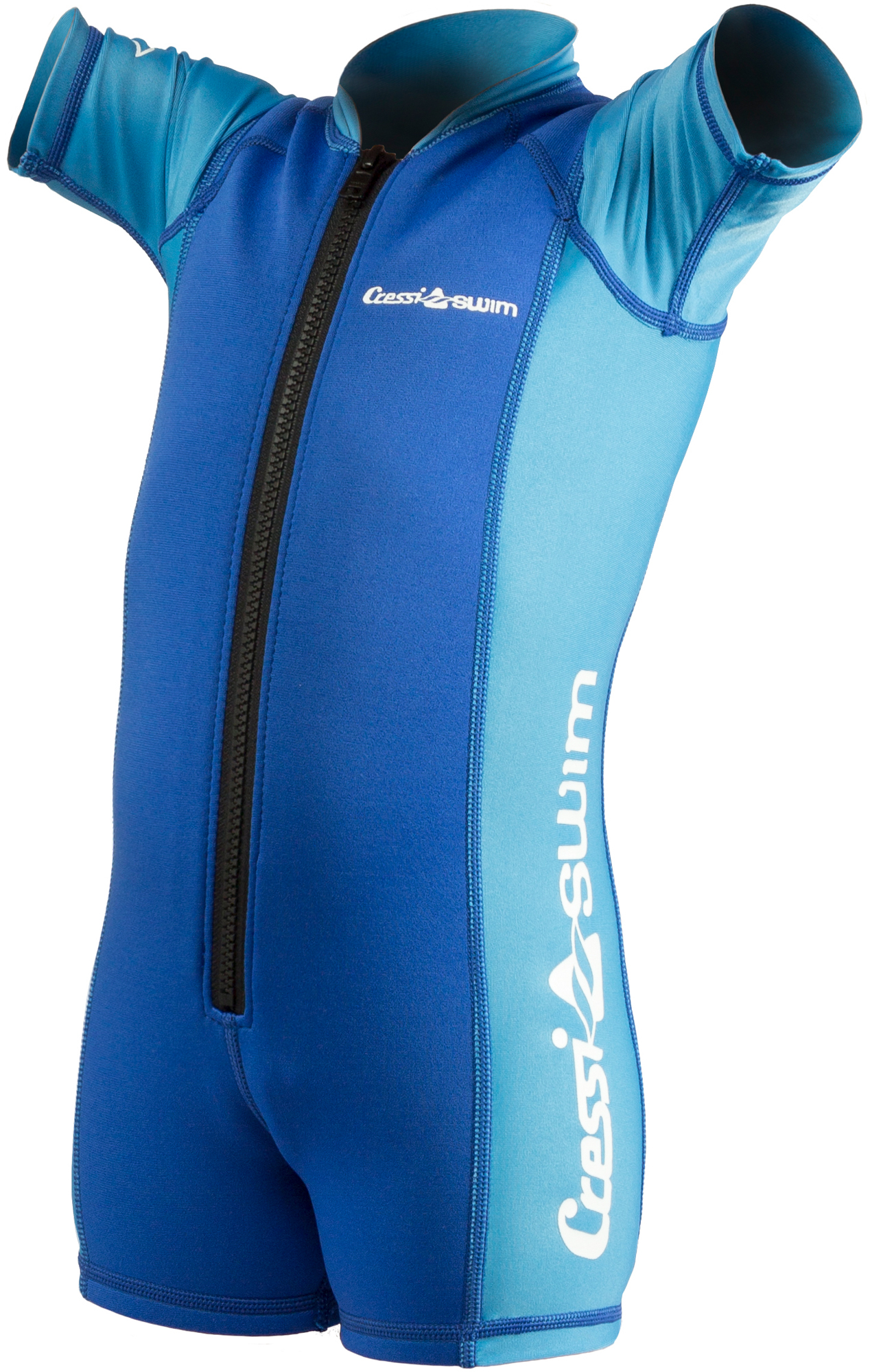 A one-piece wetsuit for children, made from 1. 5/2 mm thick neoprene (front and back) and from lycra (sides, sleeves and collar). Ykk front zip. Offers excellent protection from the cold and the sun and maximum freedom of movement thanks to the areas in lycra that won’t irritate the skin whilst swimming